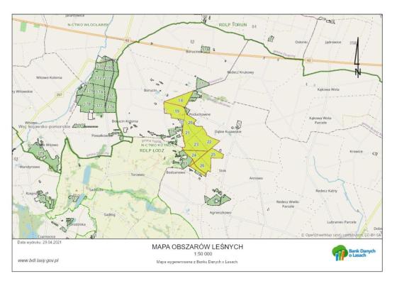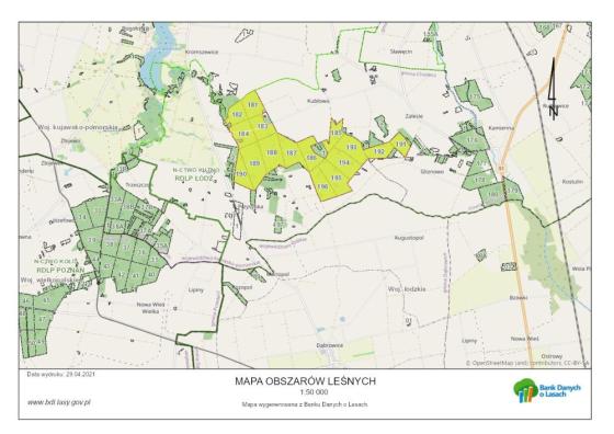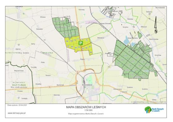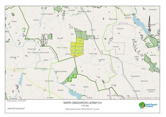 wszystko co w danym obszarze jest do zobaczenia oraz sam obszar dostępny na mapach Banku Danych o lasach [link]- można ściągnąć aplikacje na smartfona [link]